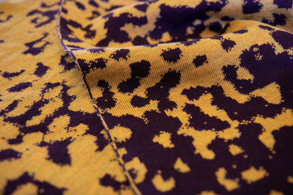 A striking and easy-to-wear cape. The design has the mottled quality of a lichen, but it’s actually a Nielanell take on animal ‘print’. Scroll on to find out which animal…